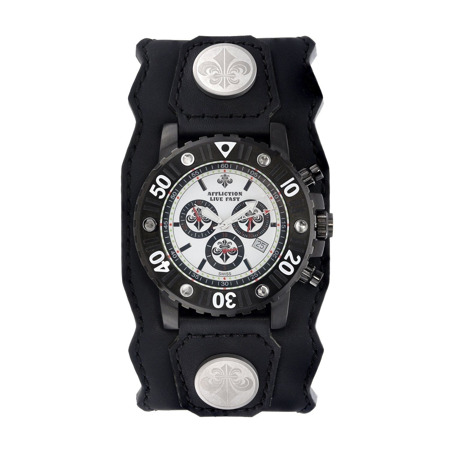 Practical and stylish - Affliction’s range of men’s watches are the perfect accessory to every outfit. Our watches are made with genuine leather, heavy duty steel hardware, and custom tooled stitching to ensure a high quality product. Our watches also range in style and size to complete any outfit for any occasion.