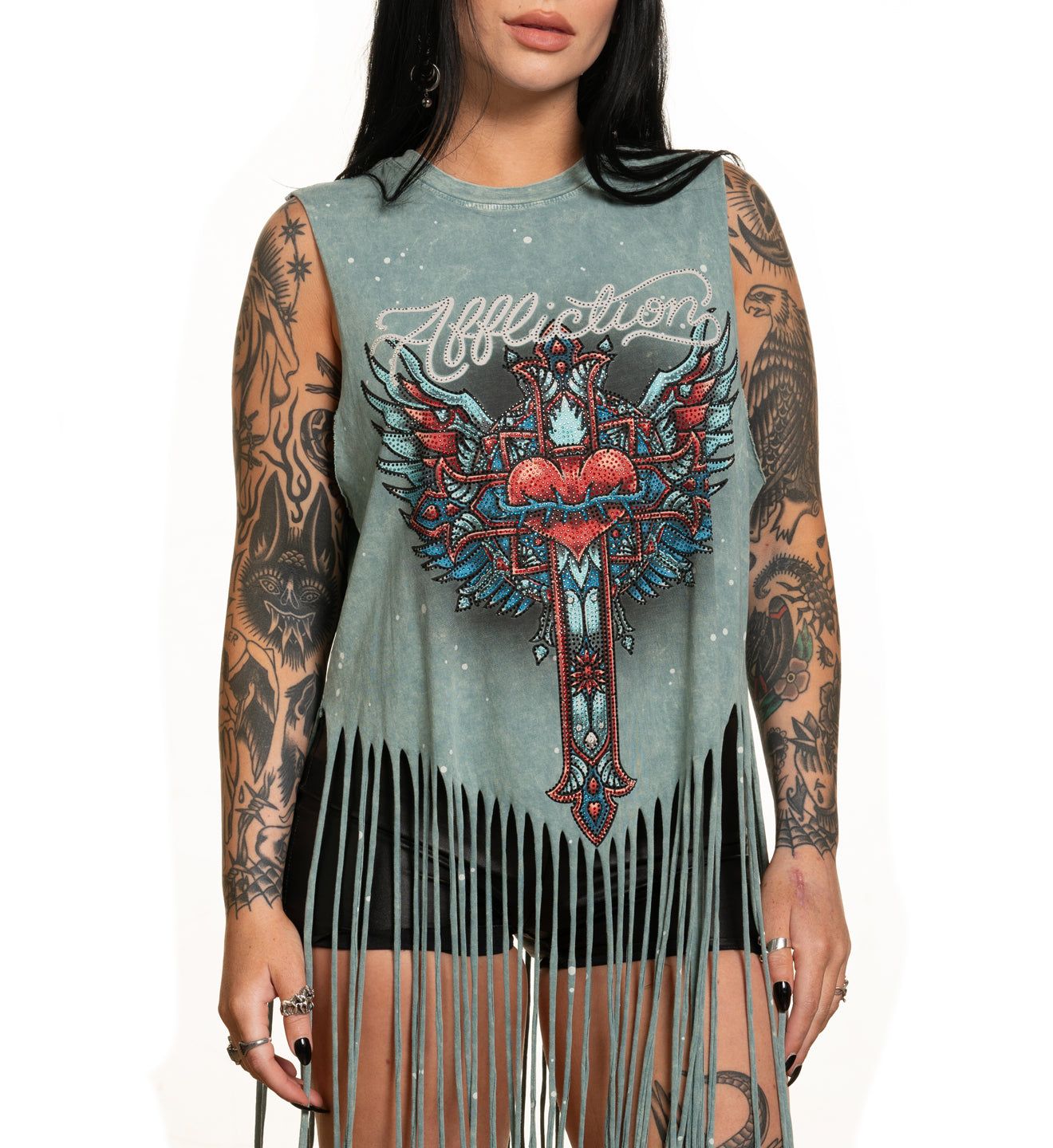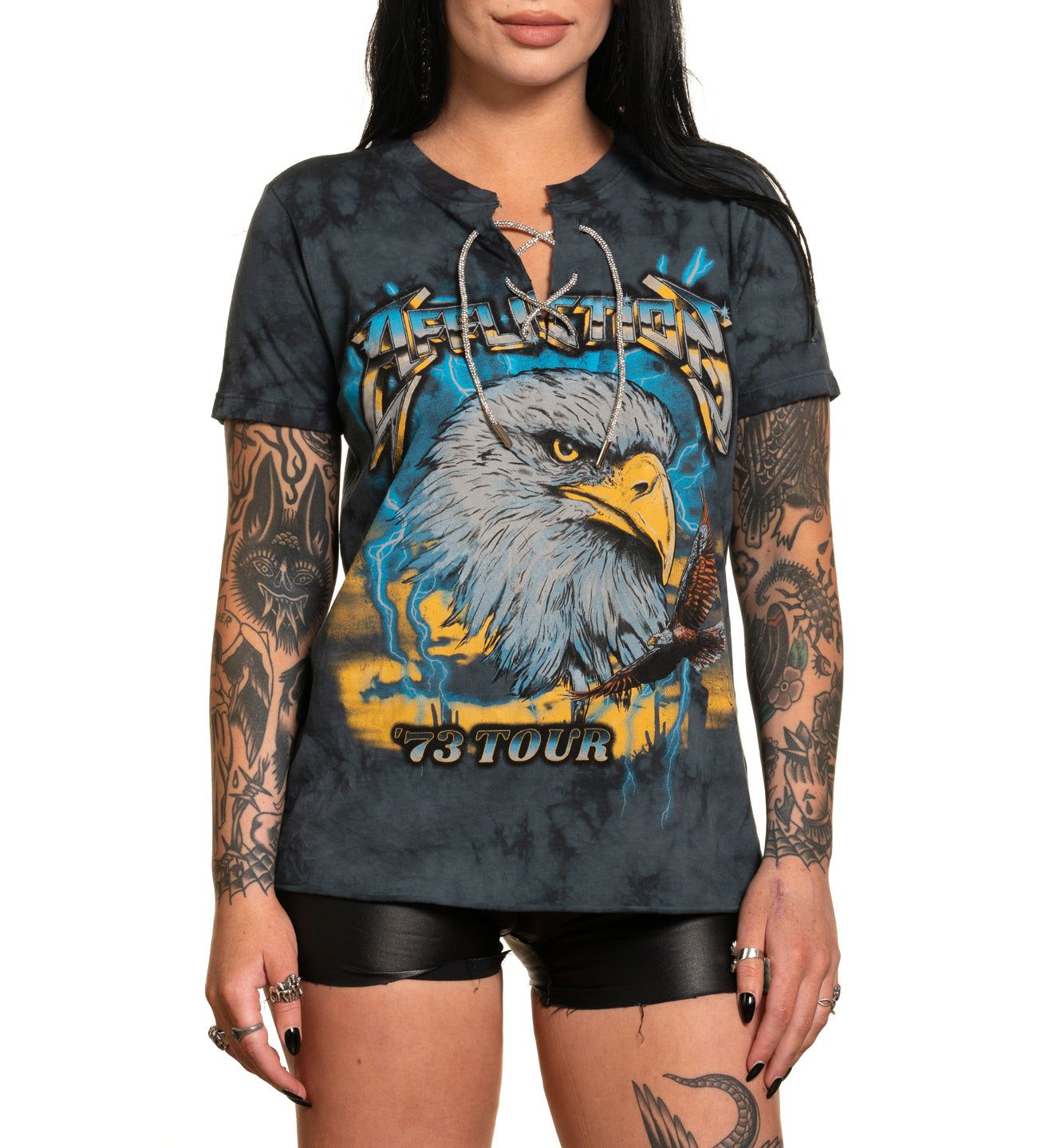 Short sleeve tees are a staple in any woman’s wardrobe, so look no further for your new favorites. Affliction’s range of short sleeve tees are made with high quality cotton, featuring original art, alternative washes, and detailed embellishments. Affliction’s short sleeve women’s tees are made for self expression - explore the collection to find the styles that resonate with you.